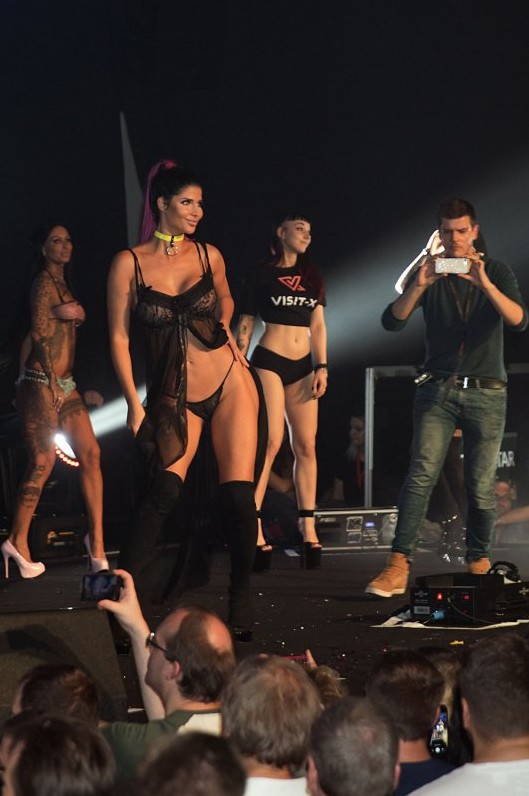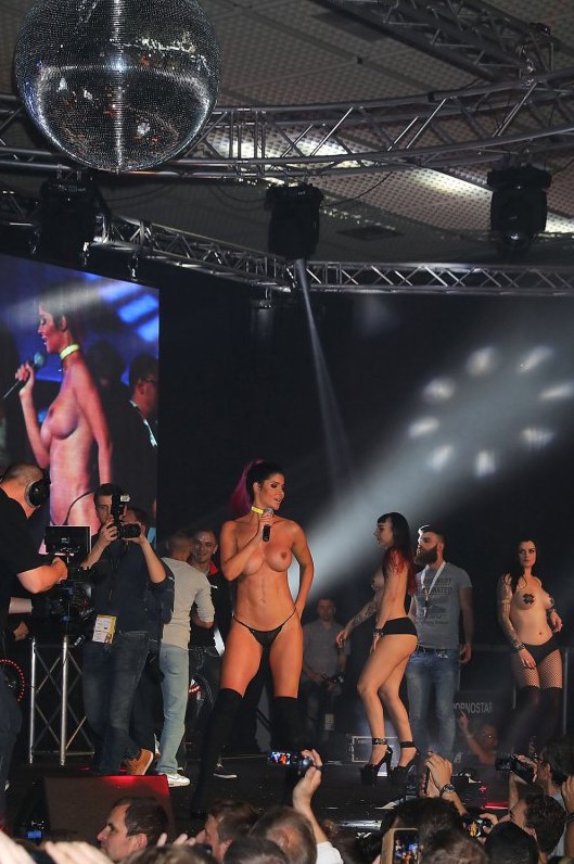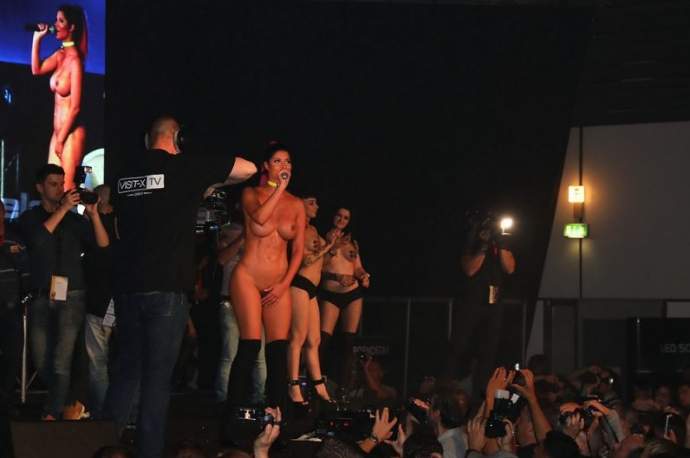 немецкая актриса, модель, телеведущая, ди-джей и певица Микаэла Шефер(Micaela Schaefer)на сто процентов разделась во время выступления на эротической ярмарке Venus в Берлине.