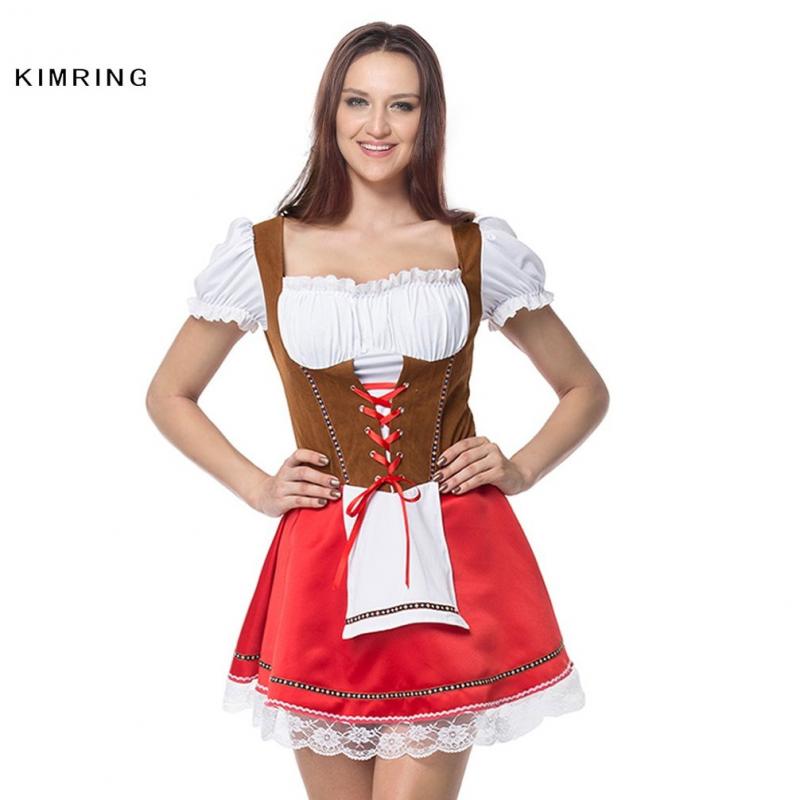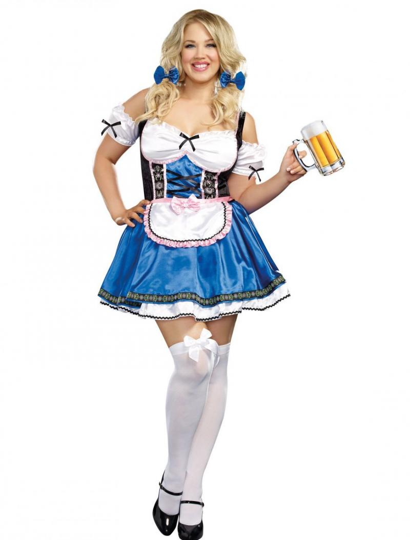 Женщины в Октоберфесте с пивом и глубоким декольте