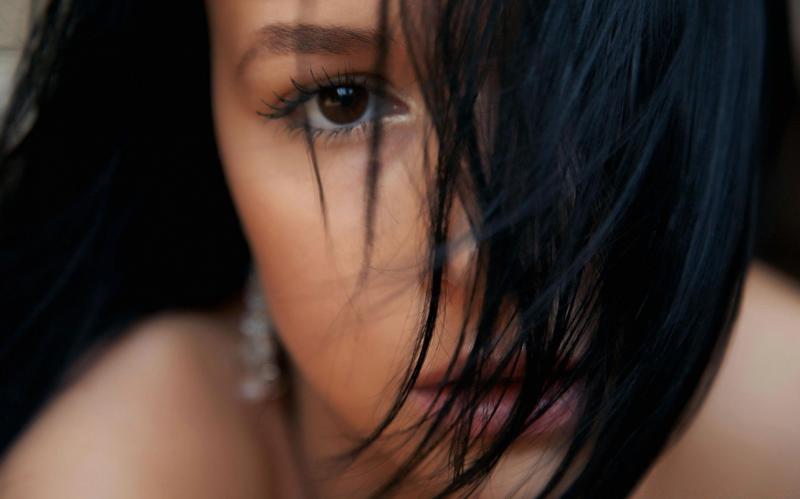 Брюнетка закрытыми очами