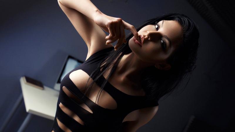 девушка красотка на черном фоне
