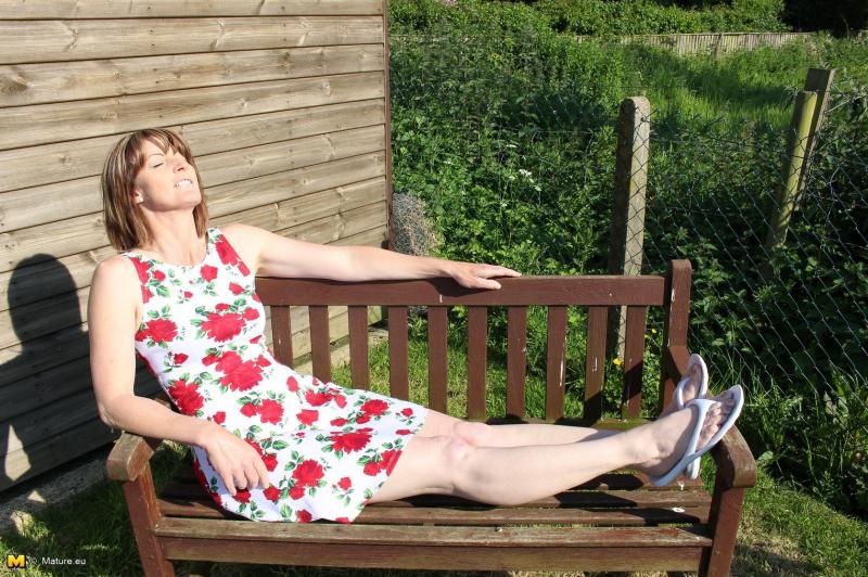 Зрелая в купальнике на даче