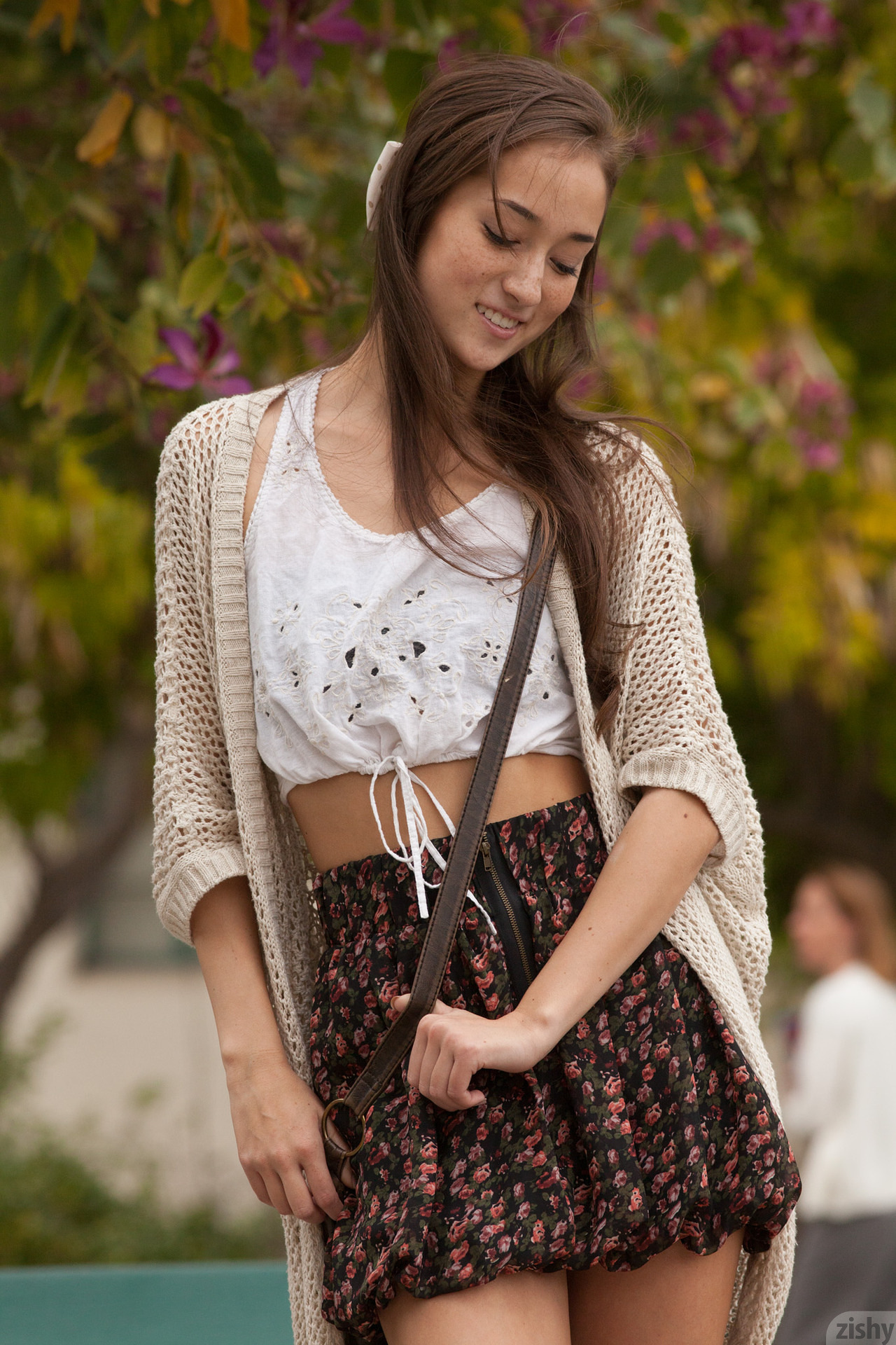 Молодая супер красотка на улице показывает себе какая она вольная сучка,