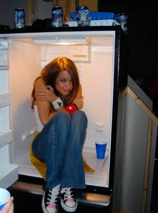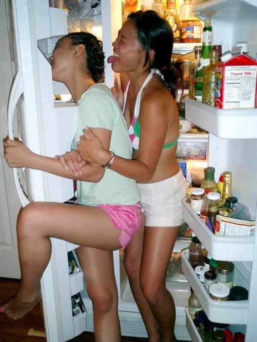 Вечеринка понятие жаркое, так вот бабёнки обожают веселиться и по мере опьянения хотят охладиться и самые холодные предметы - это холодные напитки и холодильник.