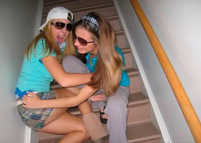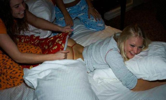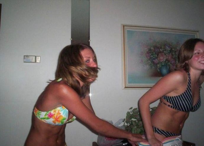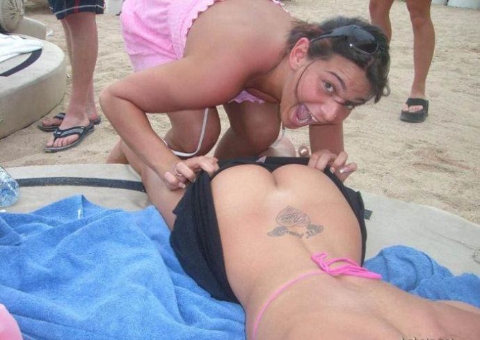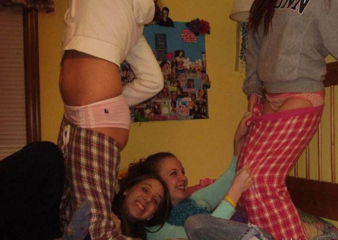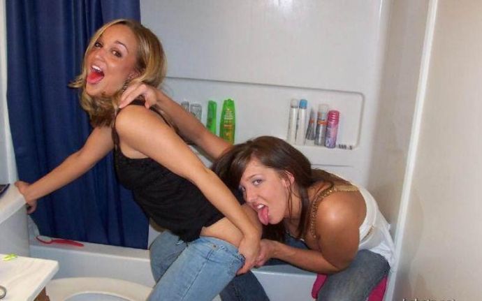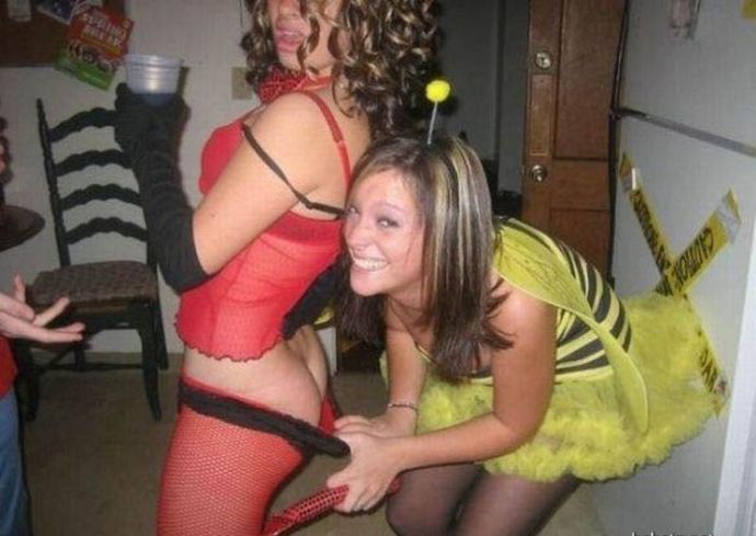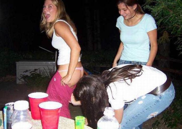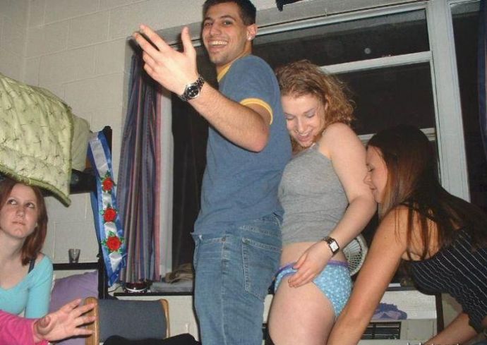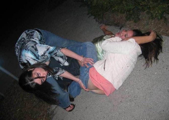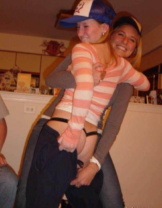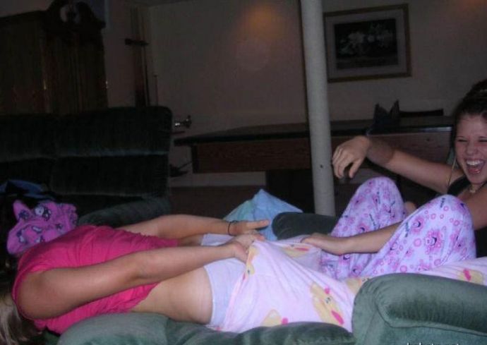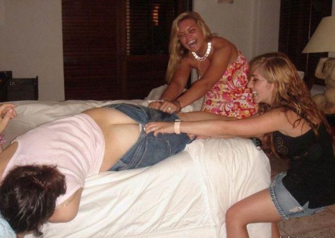 Этих пьяных девушек привлекает одежда, особенно штаны, они их пытаются снять любым методом, одна стягивает зубами, другая трясущими руками и всё для того, чтобы показать голую жопу.