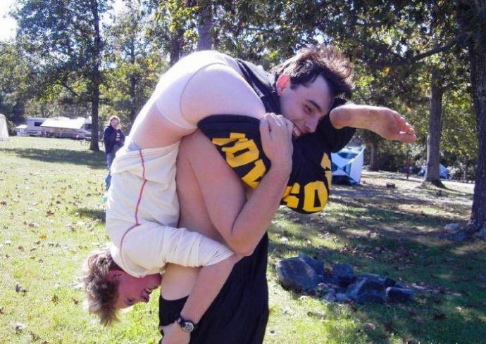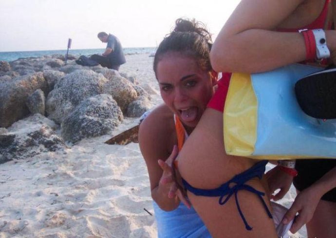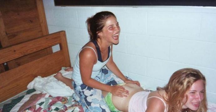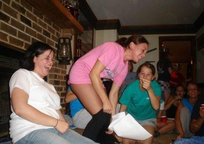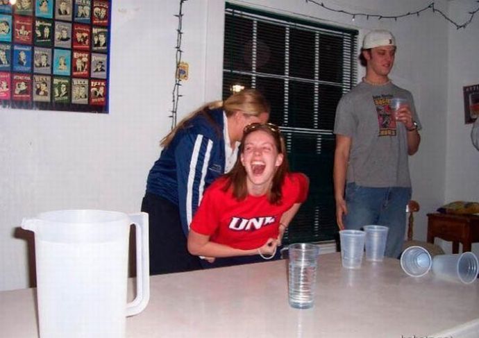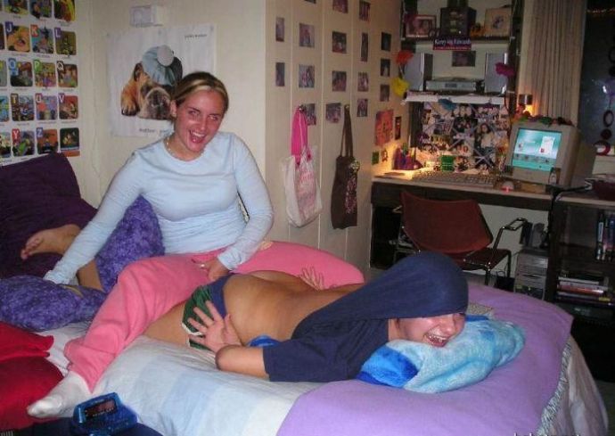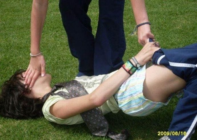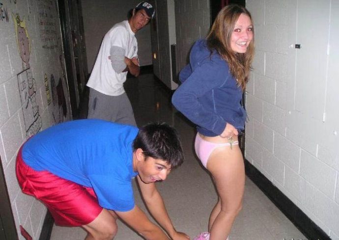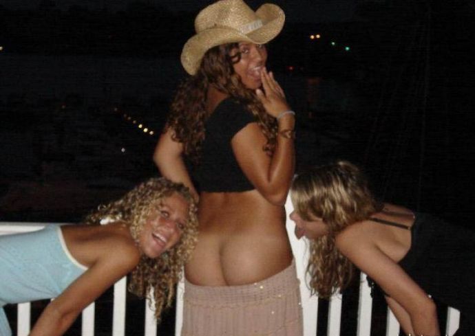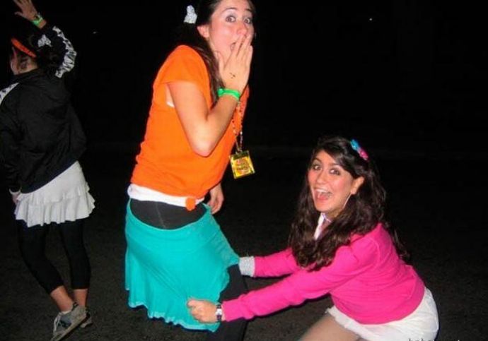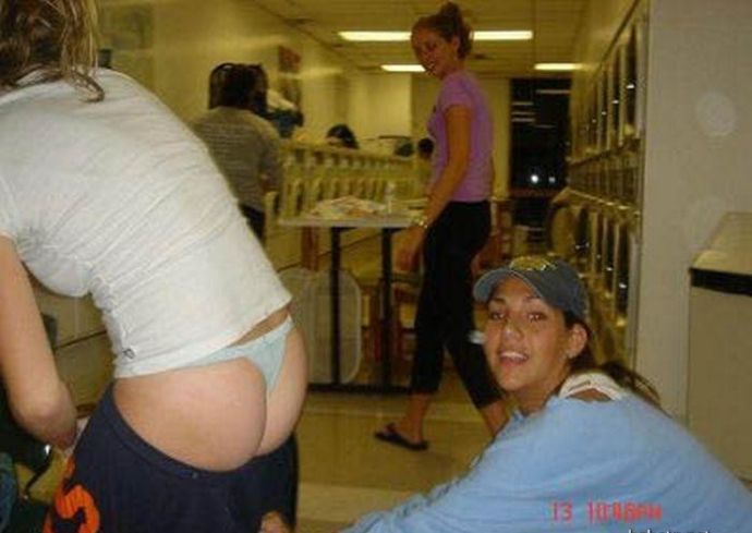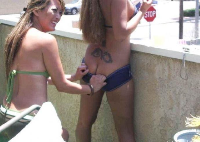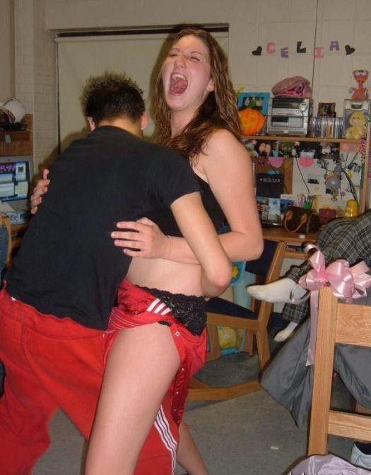 Этих пьяных девушек привлекает одежда, особенно штаны, они их пытаются снять любым методом, одна стягивает зубами, другая трясущими руками и всё для того, чтобы показать голую жопу.