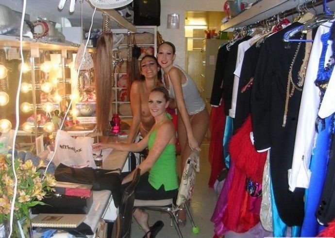 Фото модели в раздевалке и гримерной переодеваются к очередному показу. Раскрепощенные модели отлично смотрятся в эротической одежде и без шмуток тоже.