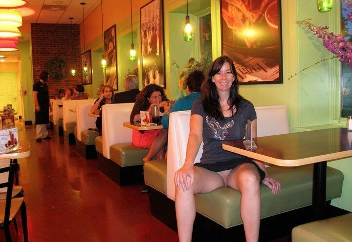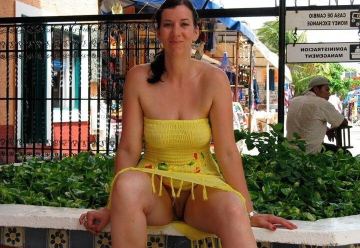 Мамка так сексом прогорелась, что решила побродить по городу в мини-юбке без трусов. Где б не попалась, там и ножки раздвигает, показывает свою лысую пилотку.