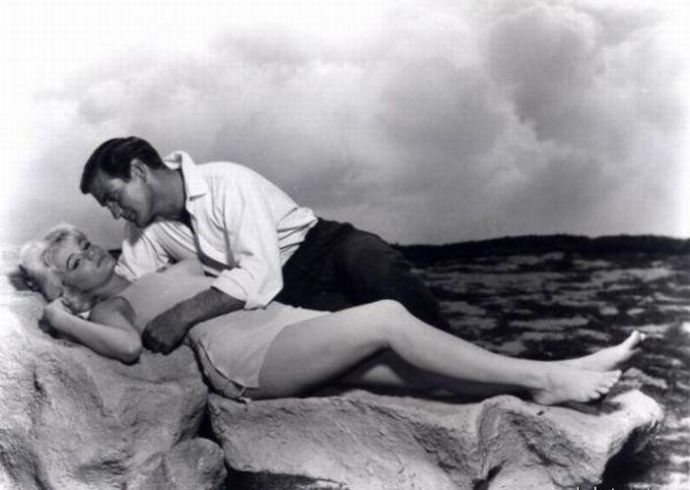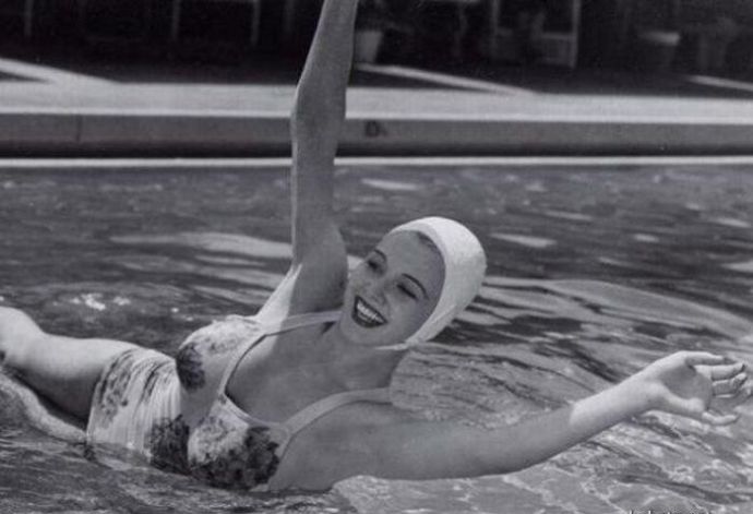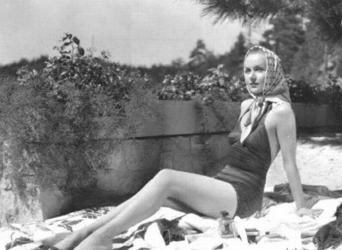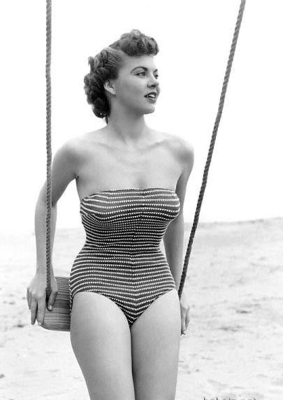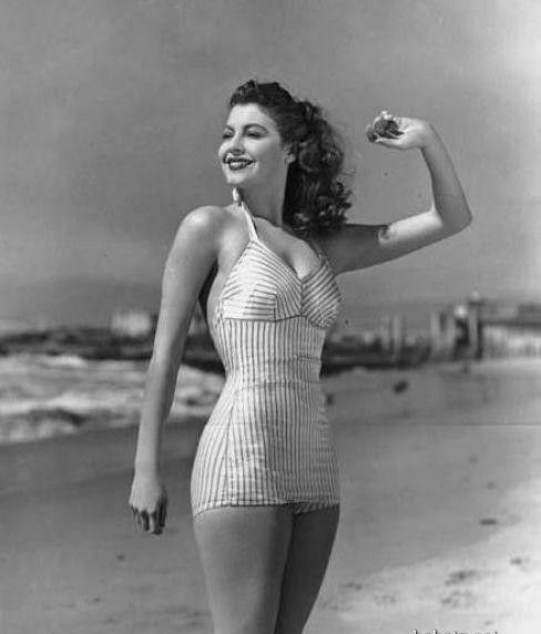 Вот такие раньше господа были купальники и бикини, не то, что сейчас полоска впивается в промежность и видны верблюжьи лапки, раньше все было скрыто, но если у тёлки было сексуальное тело можно было увидеть и через бикини.