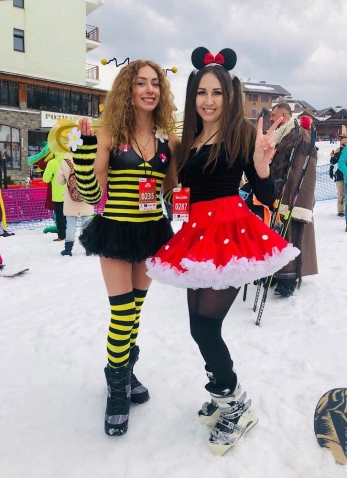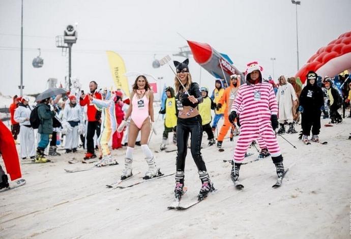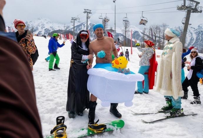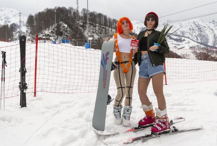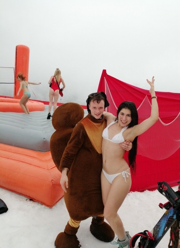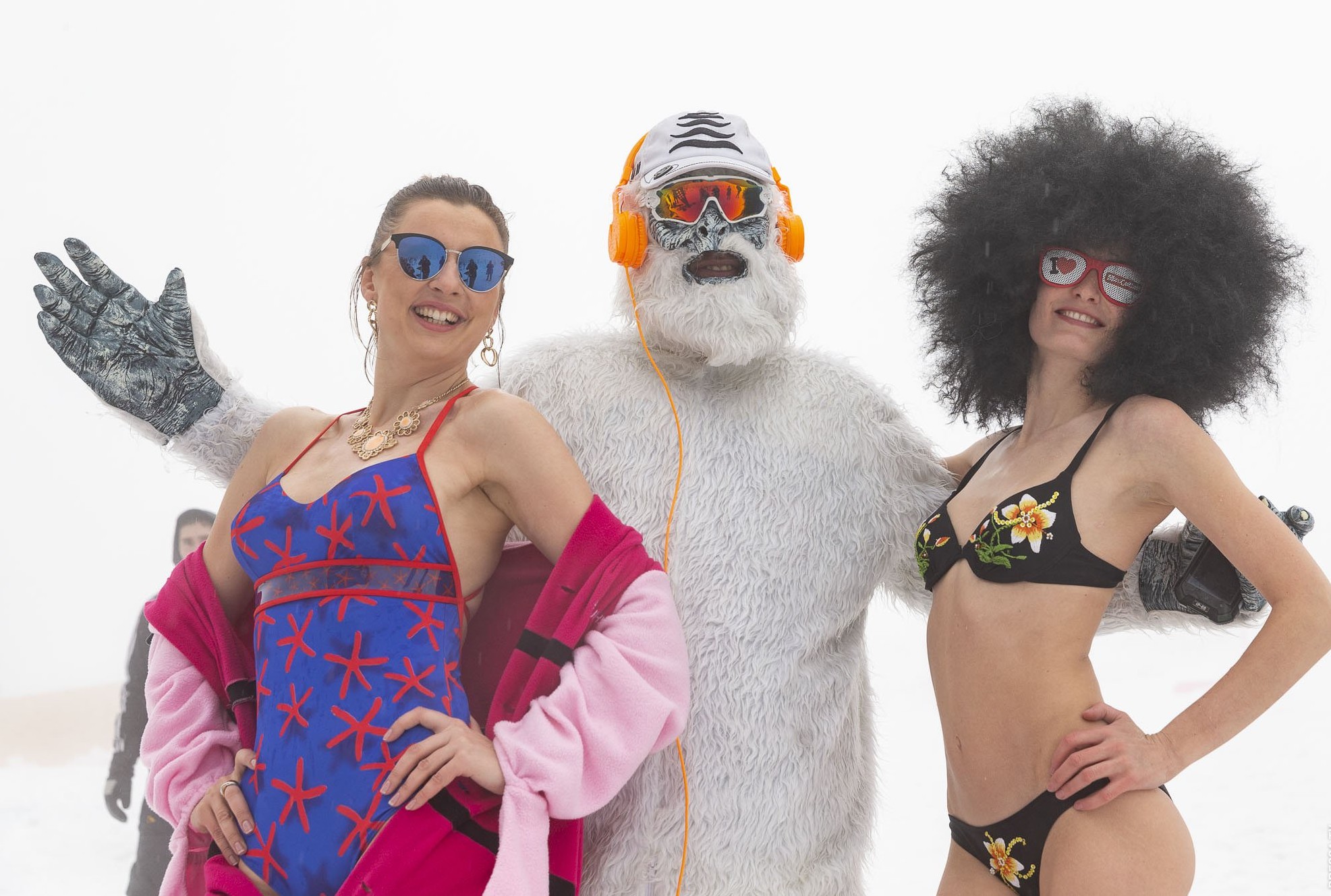 Кульминацией мероприятия стал спуск практически 900 сноубордистов и лыжников, на которых были надеты только купальные костюмы.