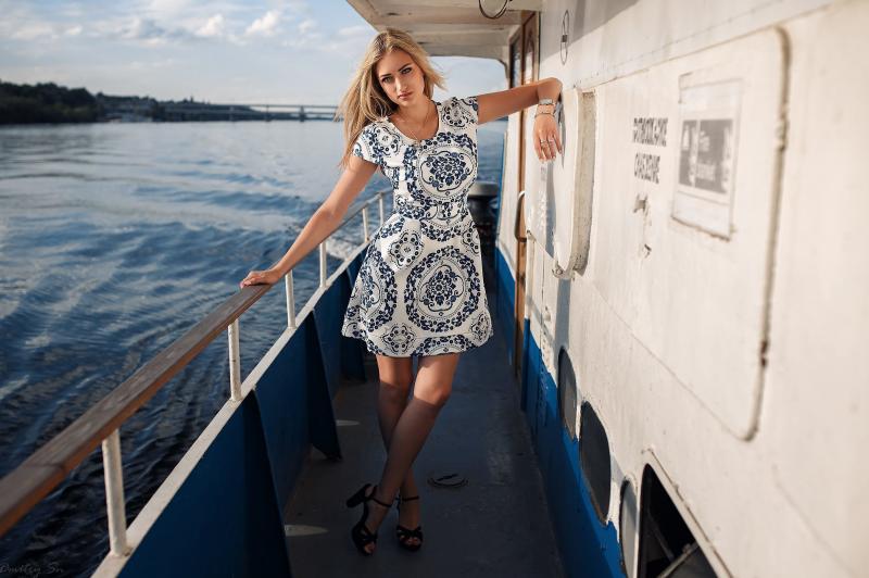 Девушка красотка и корабль фотосессии