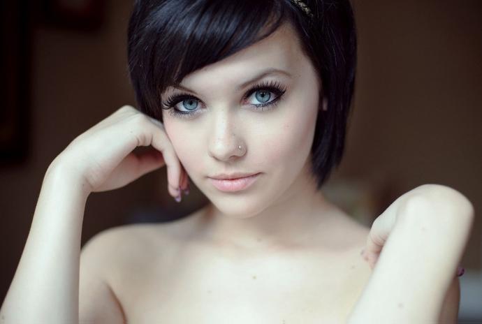 Смуглая брюнетка с голубыми очами