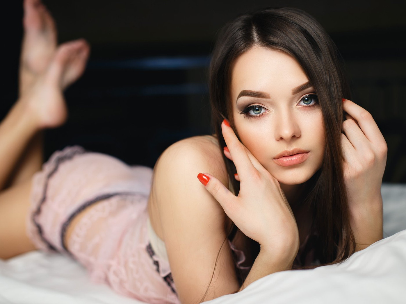 Очаровательные девушки в кровати брюнетки