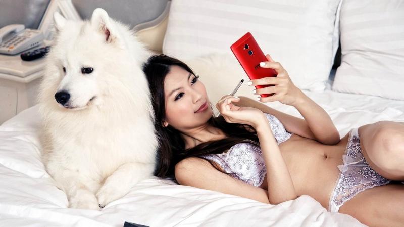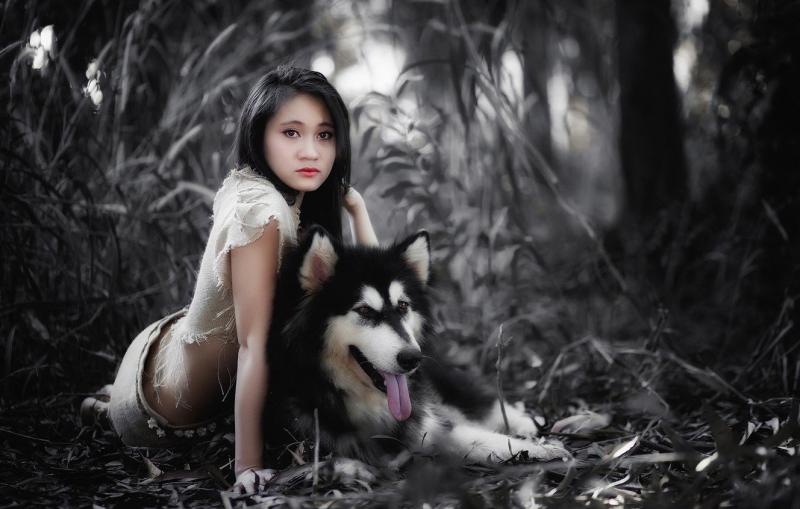 Азиатка с собачкой