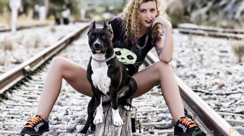 Девушка красотка с питбулем