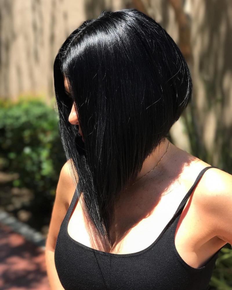 Брюнетка с каре сзаду