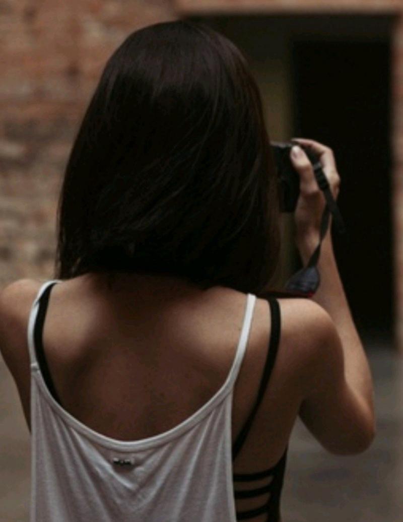 Девушка красотка с каре со спины брюнетка