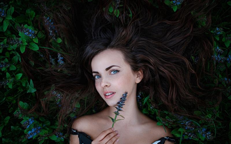 Очень сексуальная девушка красотка с цветами