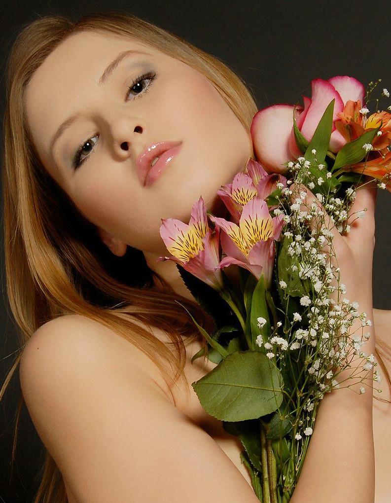 Обнаженные девушки с цветами