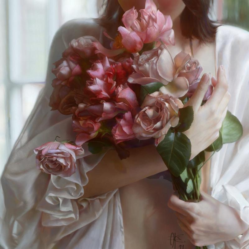 Дама с букетом цветков