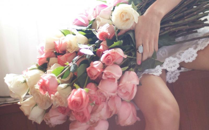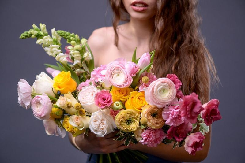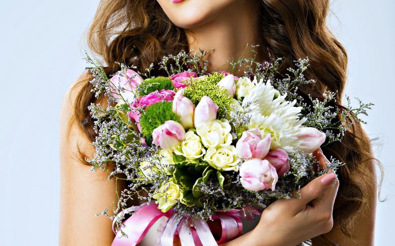 Цветы в руках у женщины