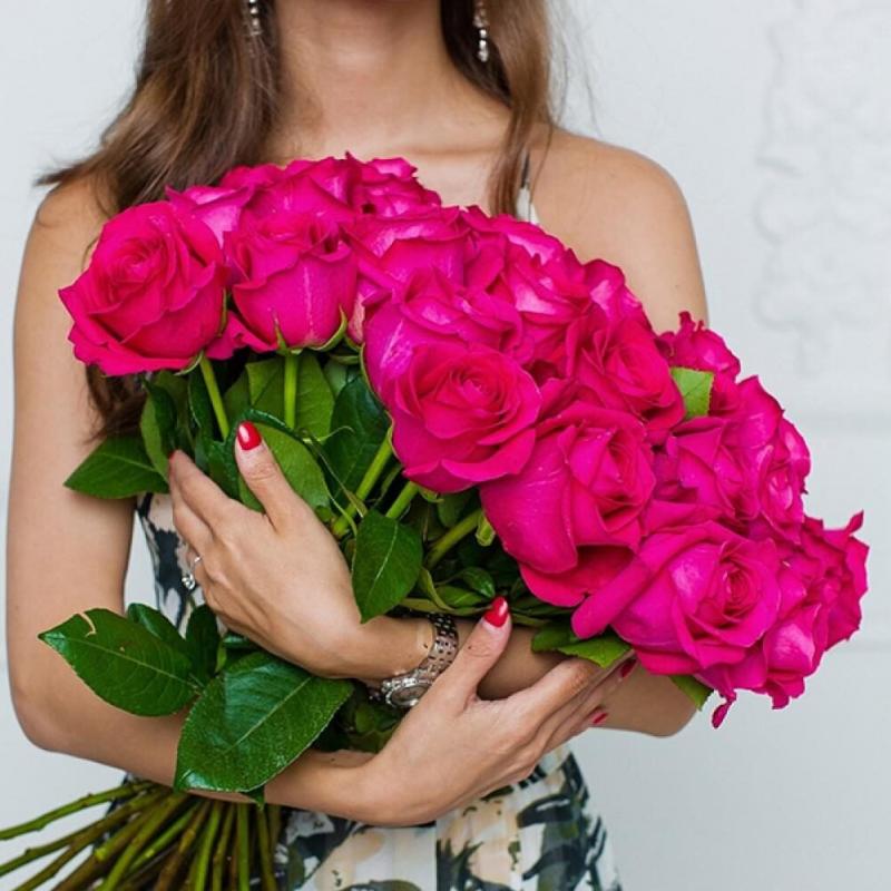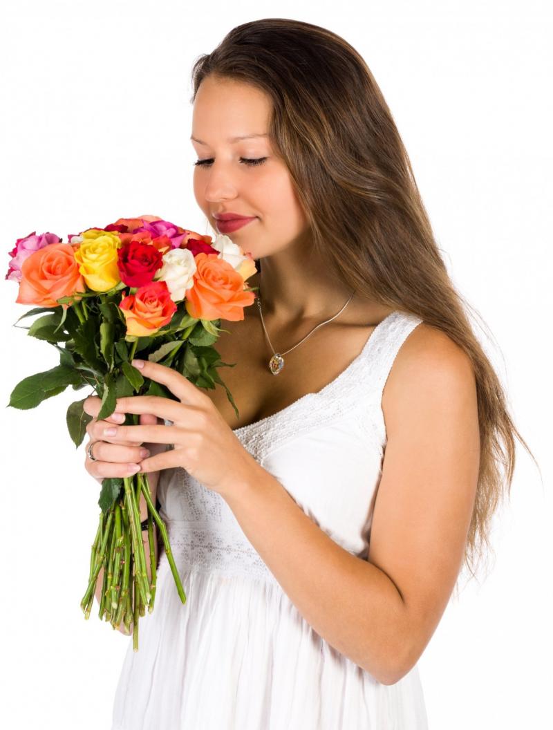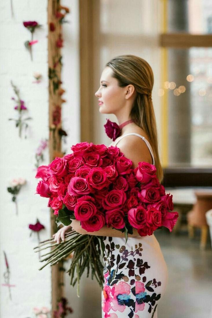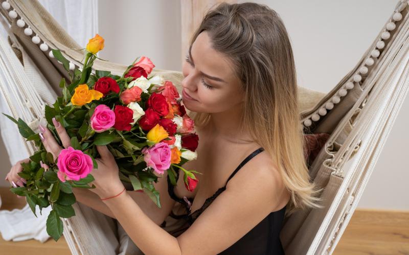 Девушка красотка с букетом роз