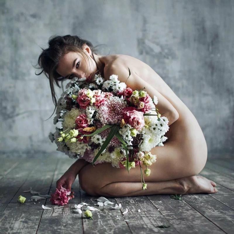 Ню с цветами
