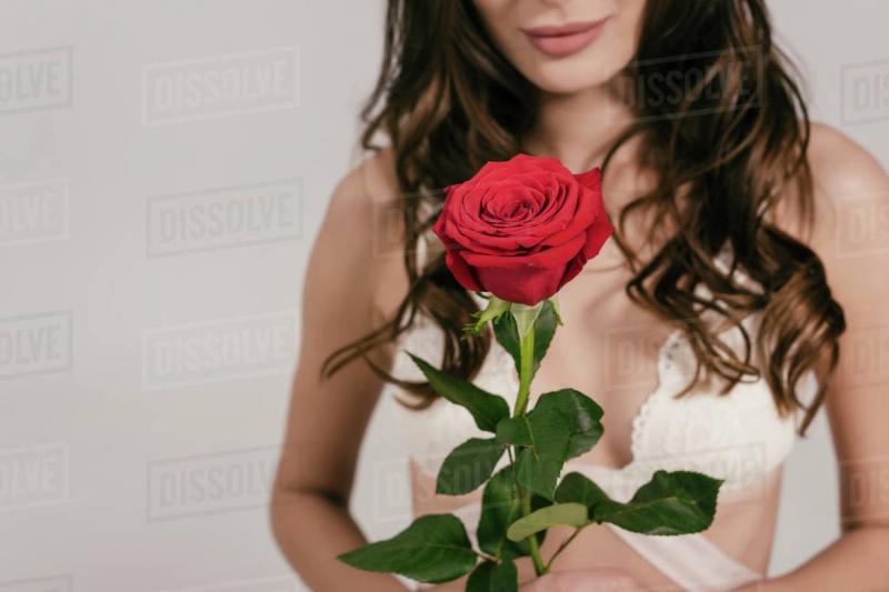 Девушка красотка в белоснежном белье и с розой