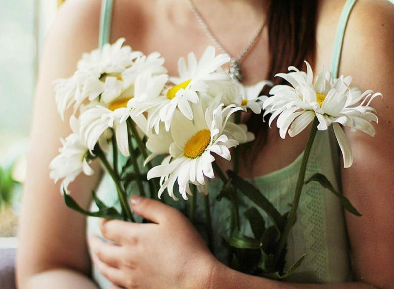 Цветы в руках у девушки