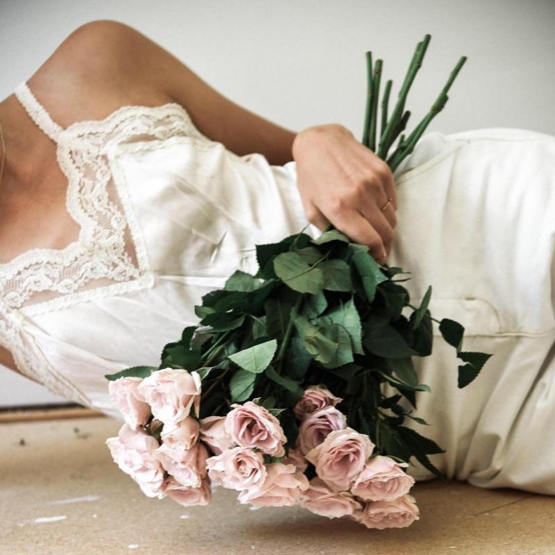 Девушка красотка в Нижнем белье с цветами
