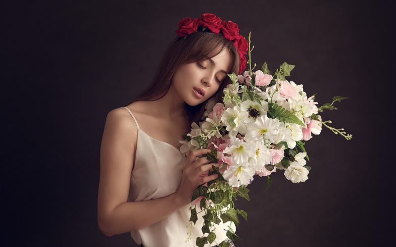 Девушка красотка с цветами