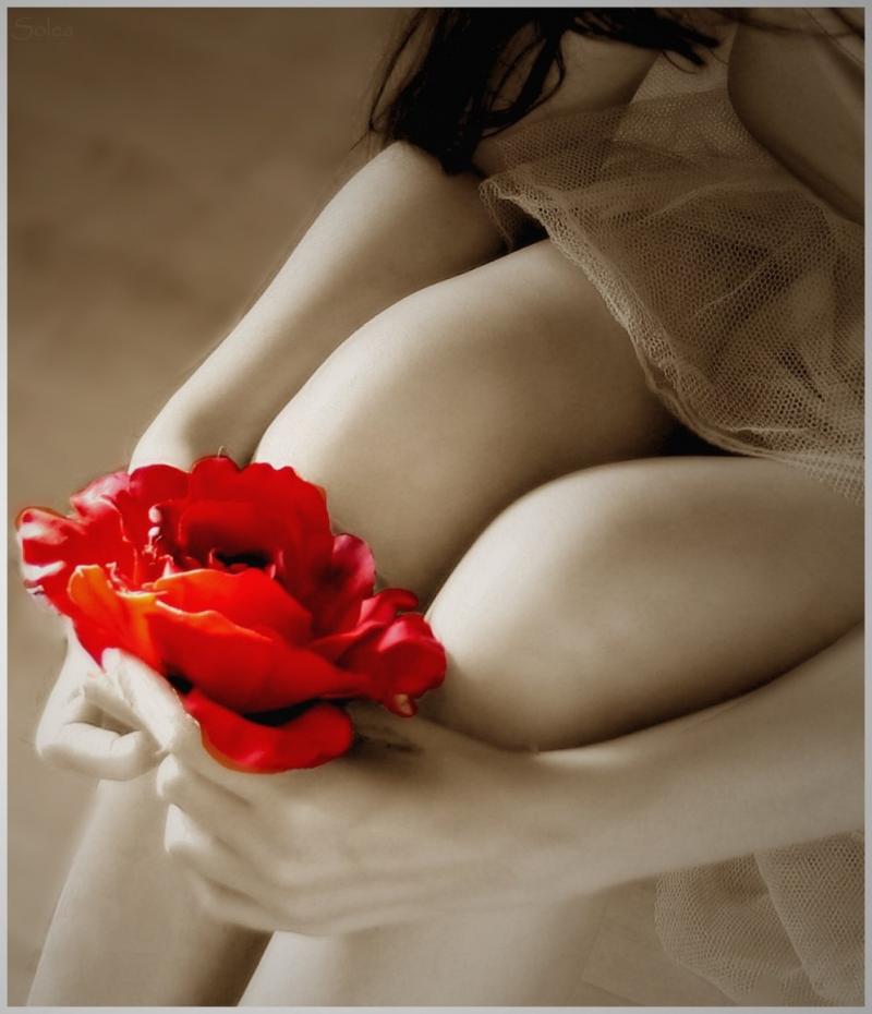 Обнажённая девушка красотка с розой