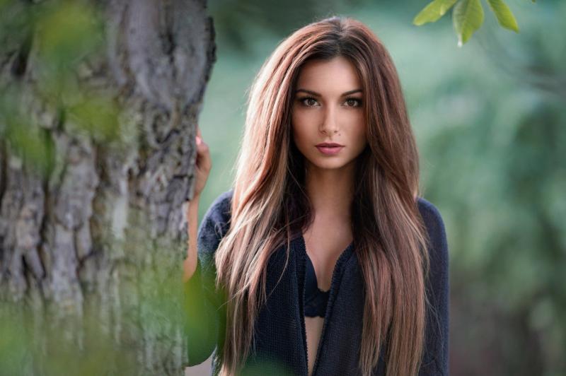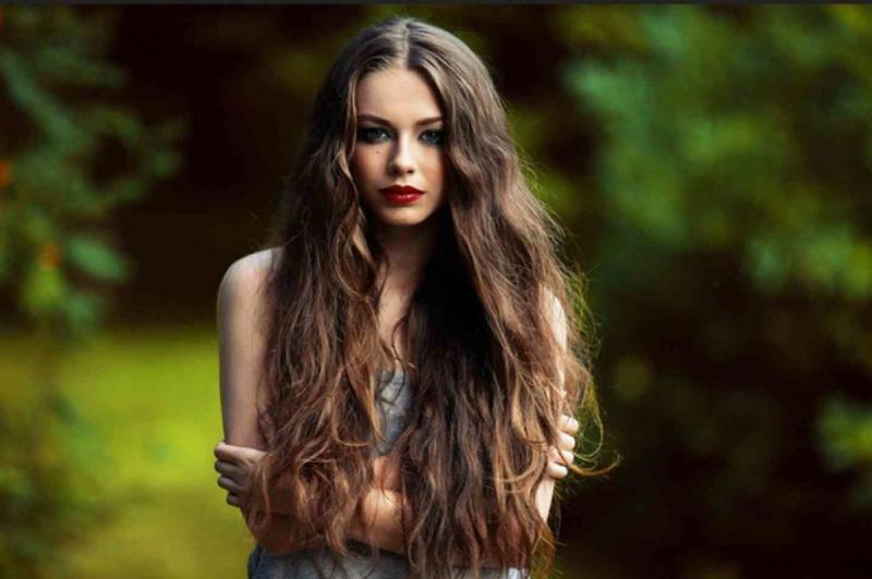 Девушка красотка с распущенными волосами ранешней в весеннюю пору