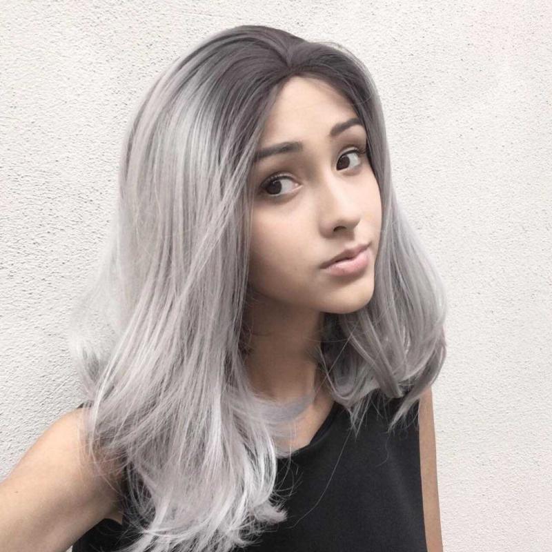 Сероватый цвет волос с челкой