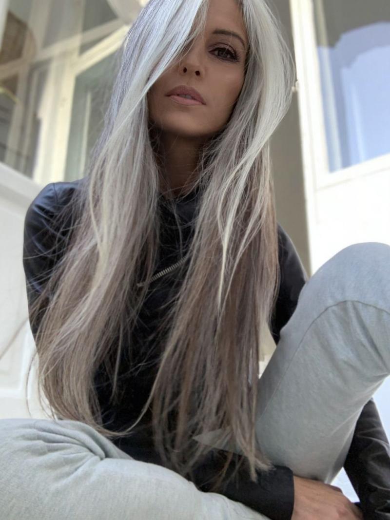 Певица с сероватыми волосами