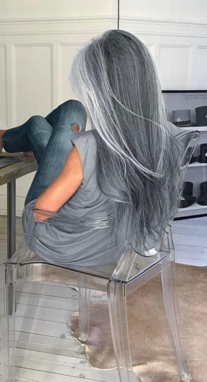 Пепельно Седоватые волосы длинные