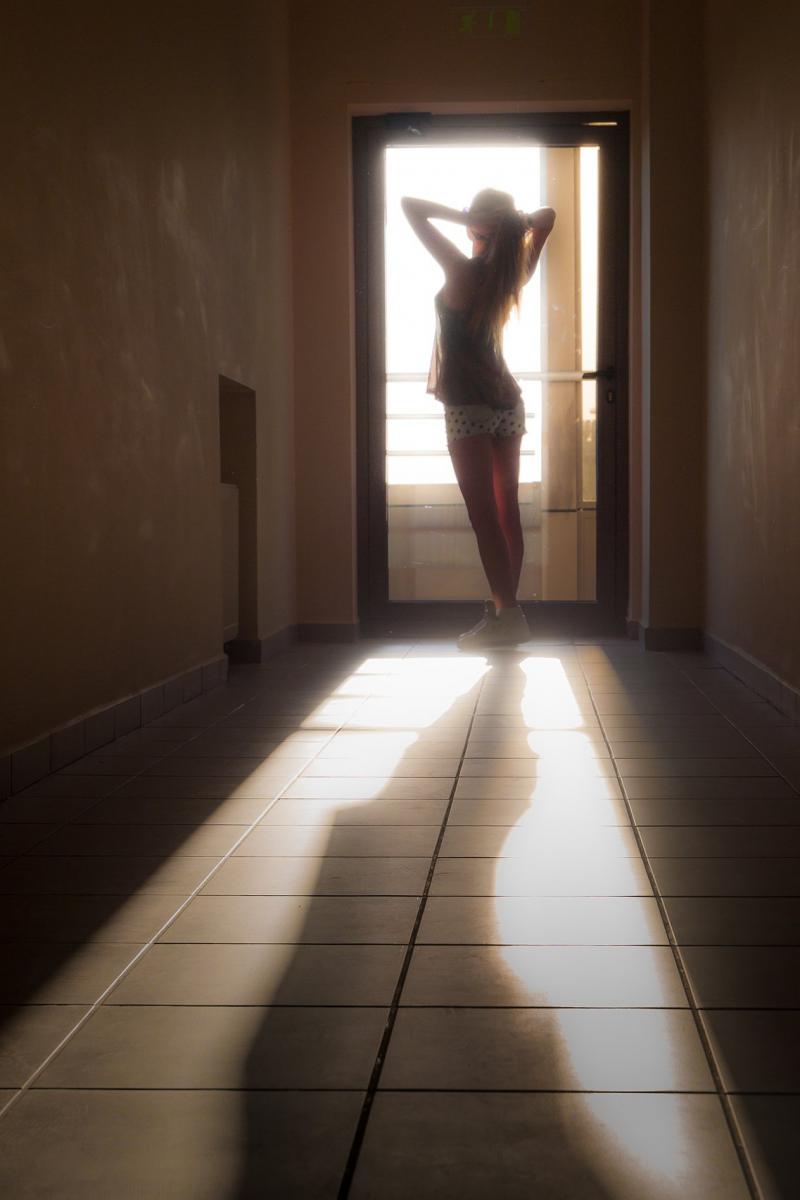 Силуэт девушки в дверном просвете