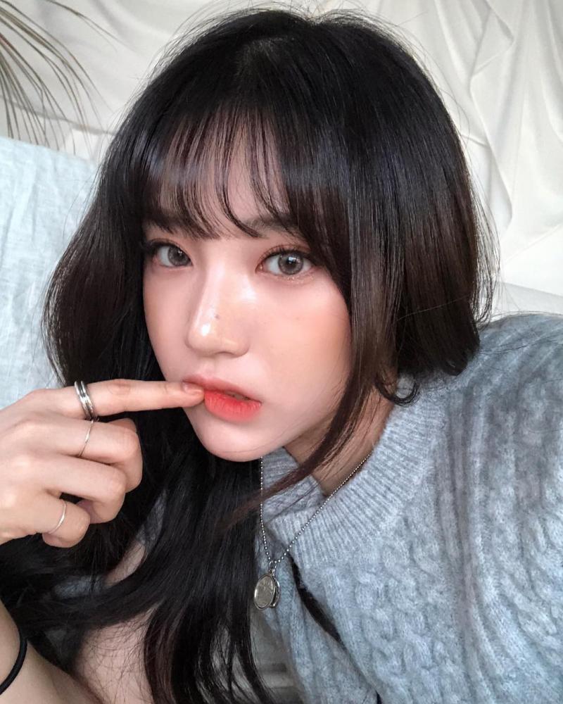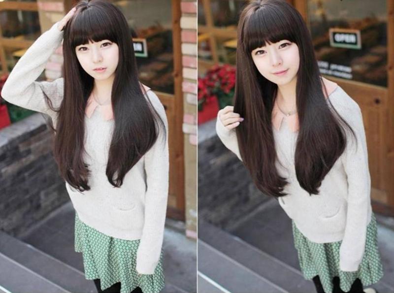 Очень сексуальные девушки с челкой и длинноватым волосом