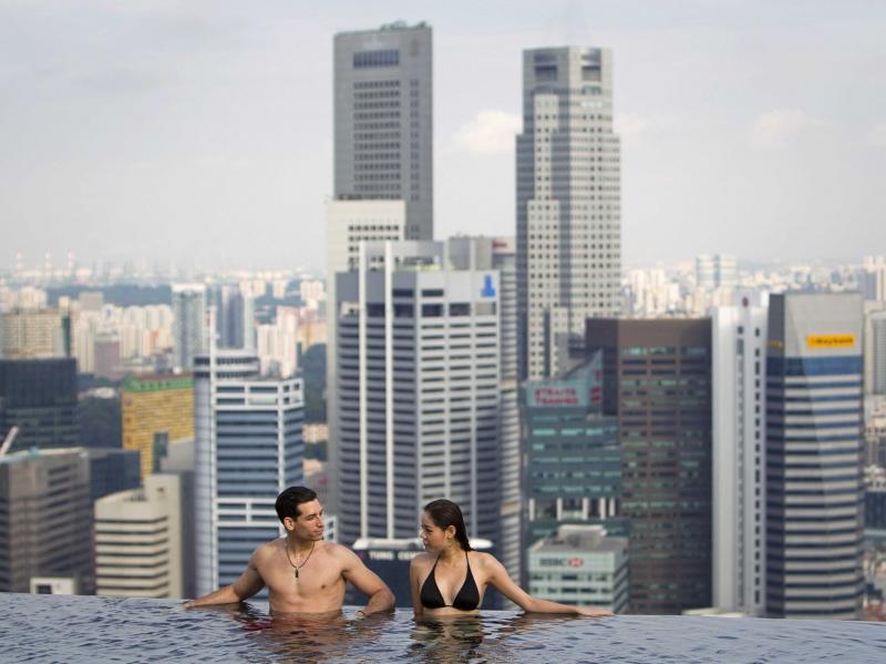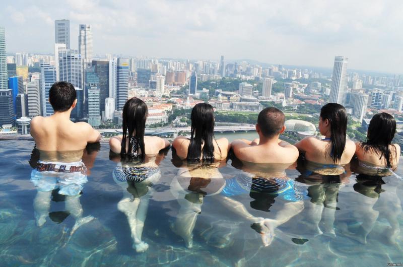 Бассейн на 55 этаже отеля "Marina Bay Sands" в Сингапуре