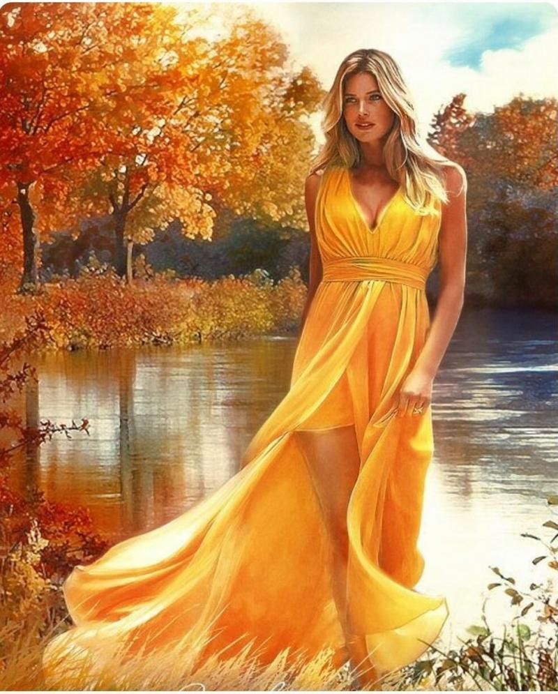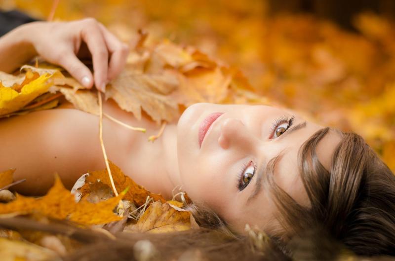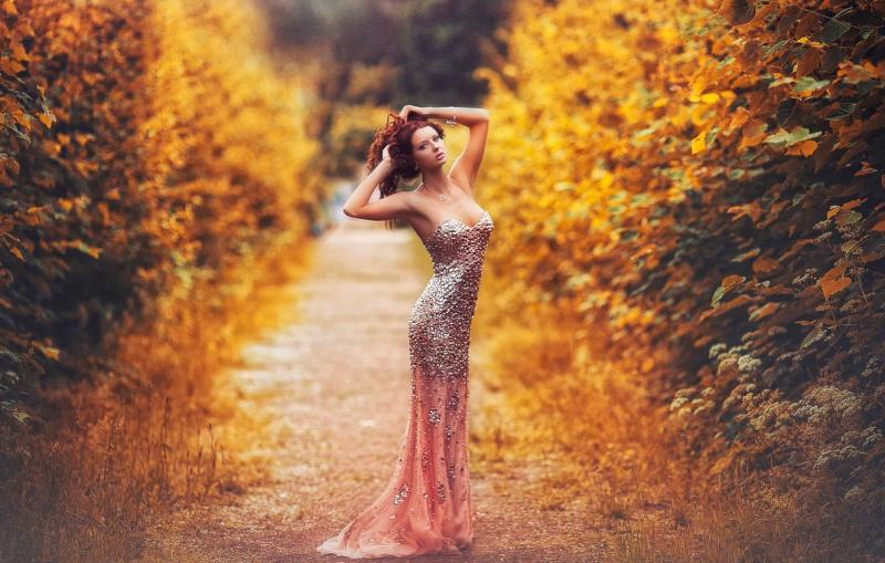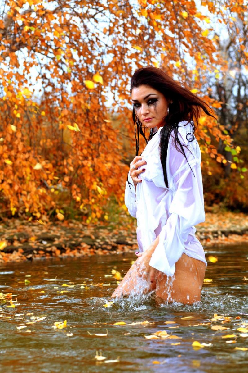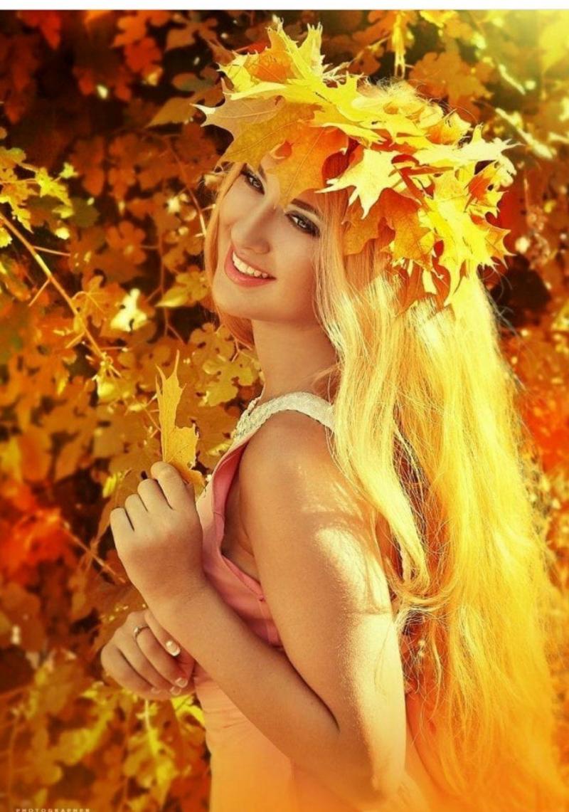 Фотосессия девушки на природе в белоснежной рубахе осень