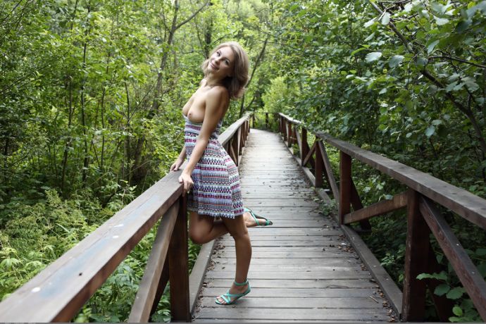 Эротическая подборка модели на мосту и красивый задний фон не только её сочной упругой попки, но и очаровательной природы.