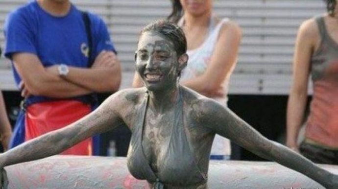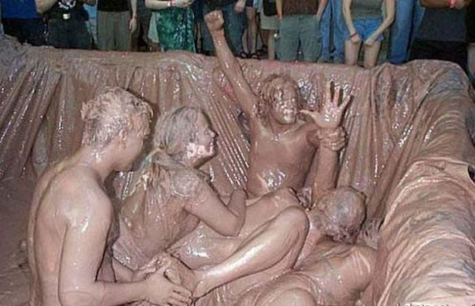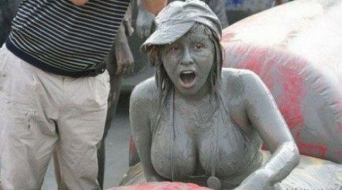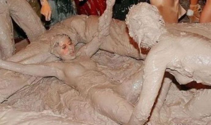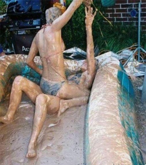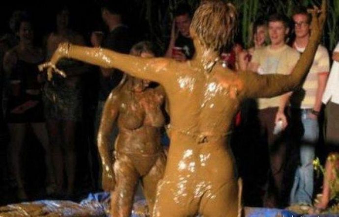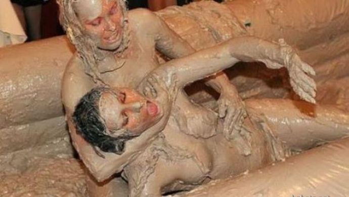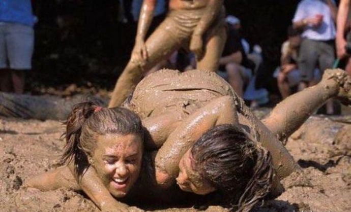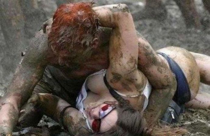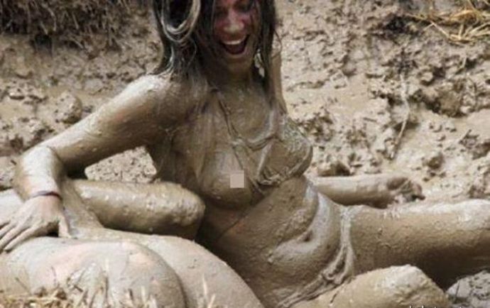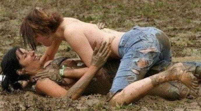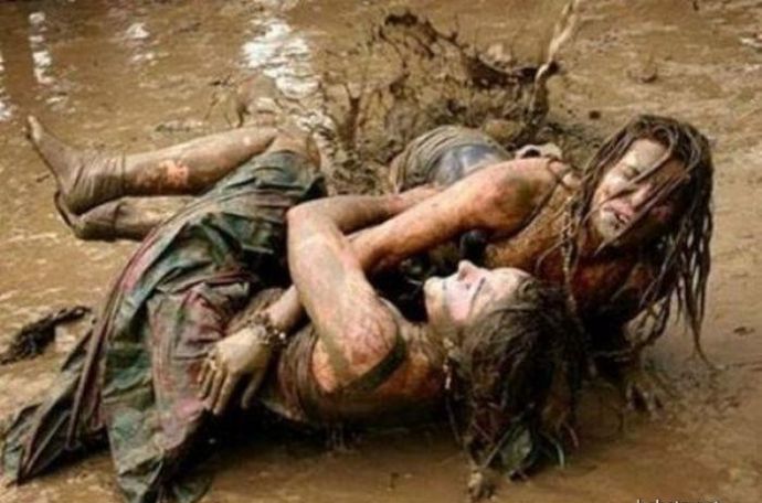 Кто то смотря на это представляет картину свиней купающих в грязи, похоже не спорю, но тут немного другая история. На одних фото девушку устраивают кулачные бои в грязи, а на других товарищи извращенцы смотрят на голых девушек измазанными в грязной жиже.