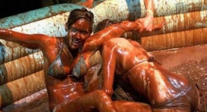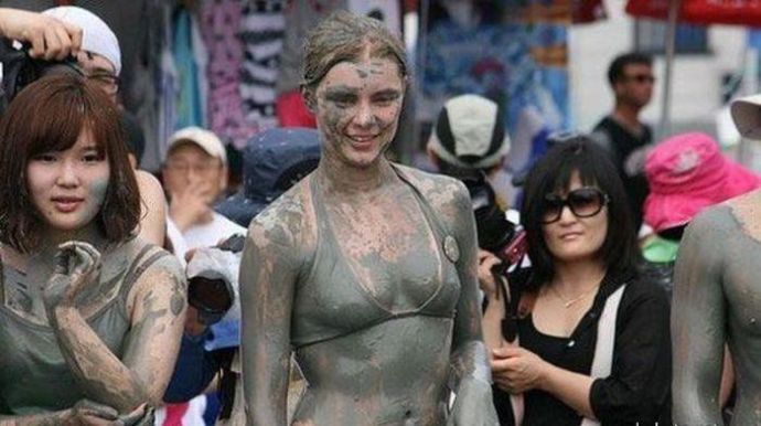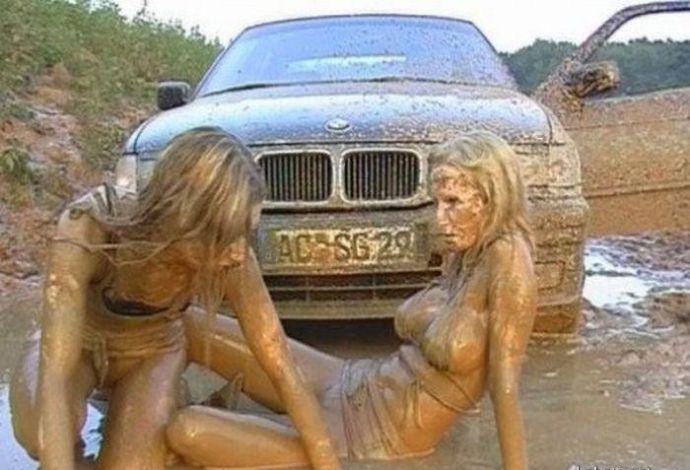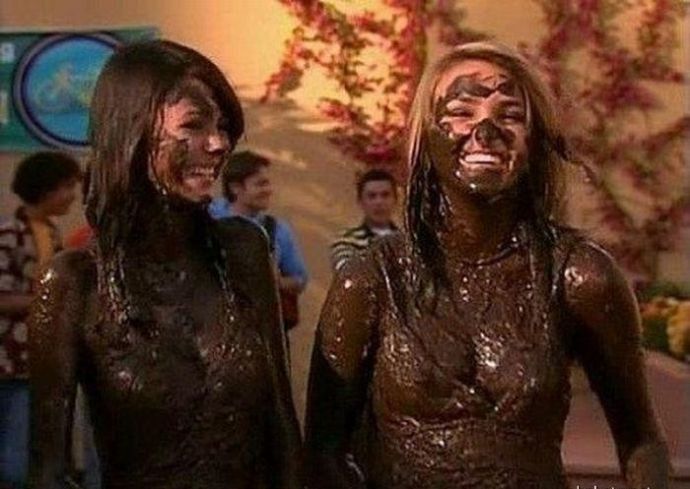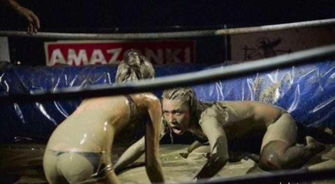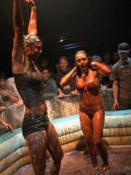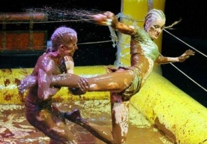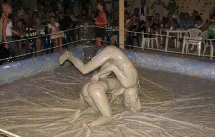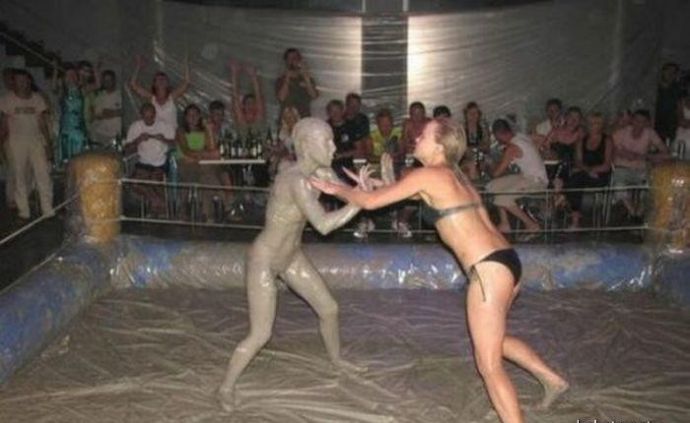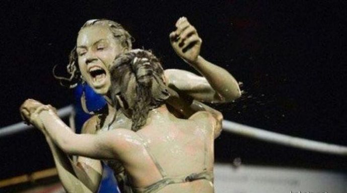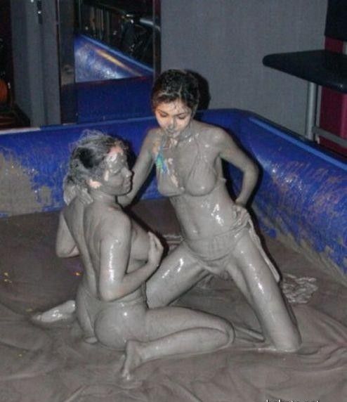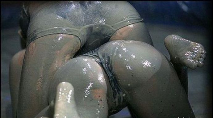 Кто то смотря на это представляет картину свиней купающих в грязи, похоже не спорю, но тут немного другая история. На одних фото девушку устраивают кулачные бои в грязи, а на других товарищи извращенцы смотрят на голых девушек измазанными в грязной жиже.
