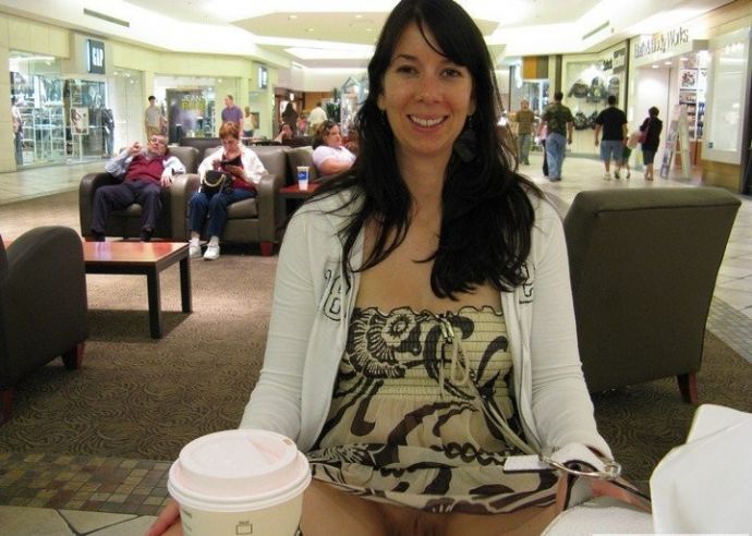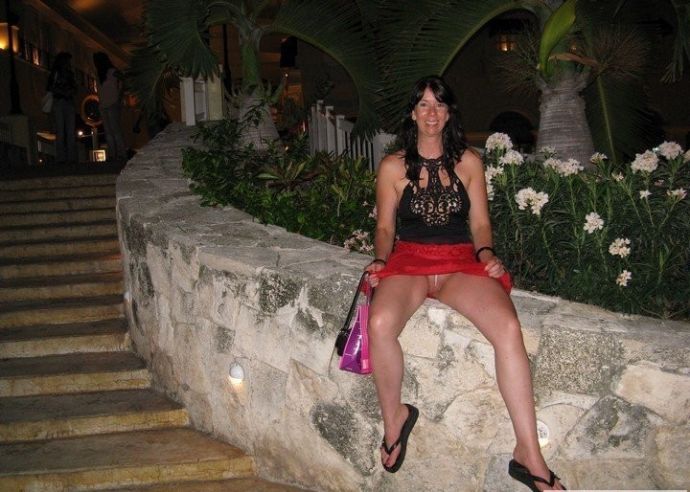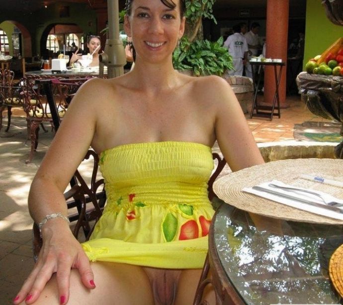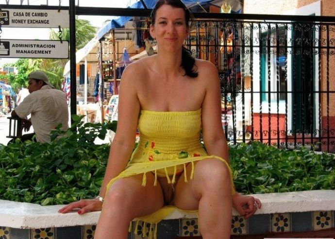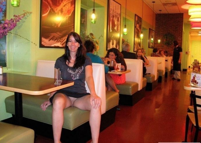Зрелая тётка ходит по городу в короткой юбке по городу, но самое интересное то, что тёлка совсем не носит трусиков и везде раздвигает свои ноги и в кафе, и в ресторане.