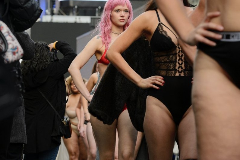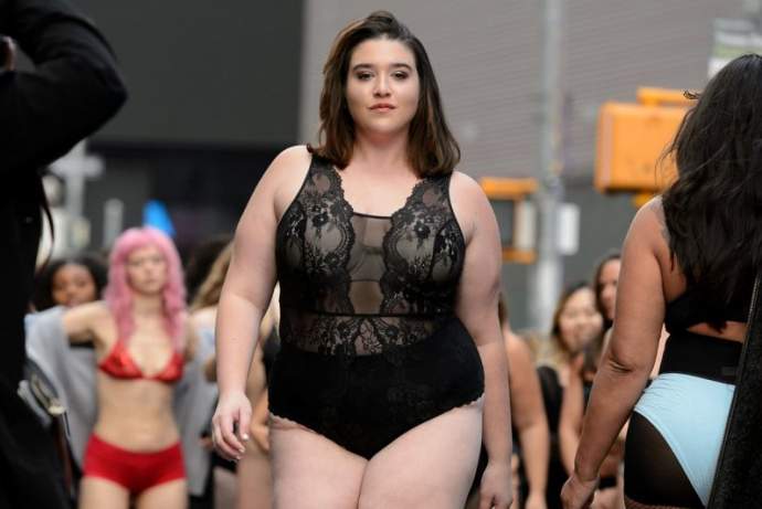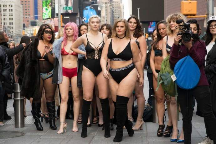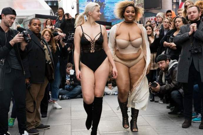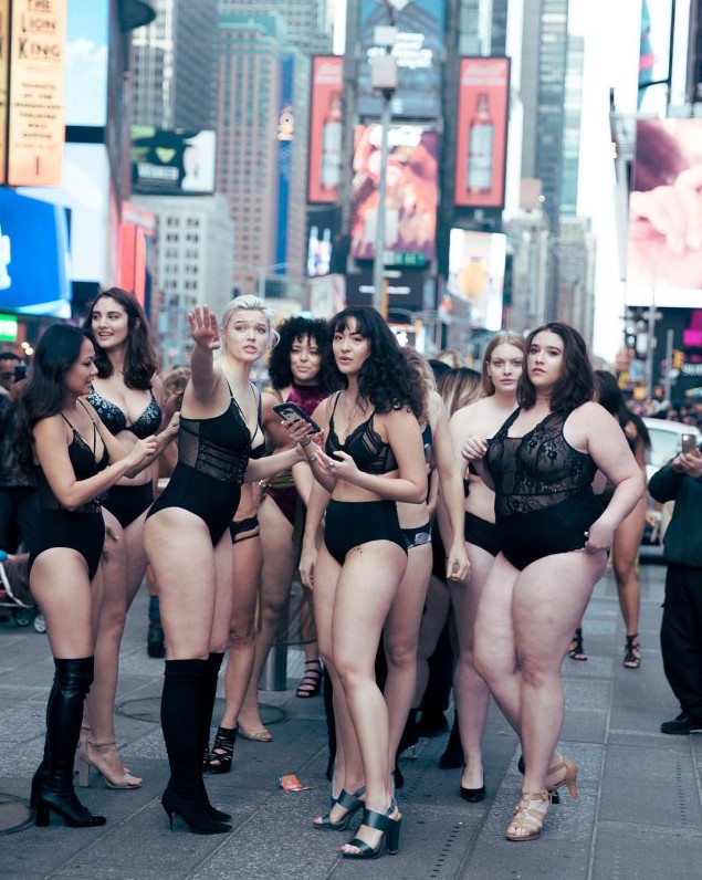 Показ прошёл прямо на Таймс-сквер. В дефиле приняли роль 25 дам разных размеров, а их публикой были прохожие люди.