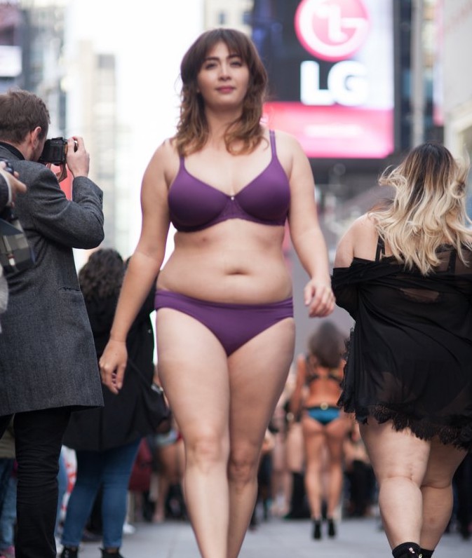 Борец за права дам и модель Кристиана организовала показ, на котором девушки всех размеров смогли пройтись по Таймс-сквер в одном нижнем белье. В дефиле под заглавием "Настоящий подиум"(REALCatwalk)приняли роль 25 дам.