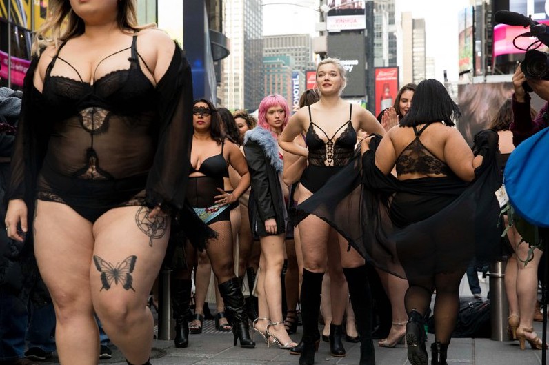 Фото: Полураздетые девушки всех размеров прошлись по Таймс-сквер