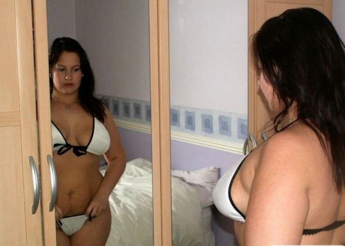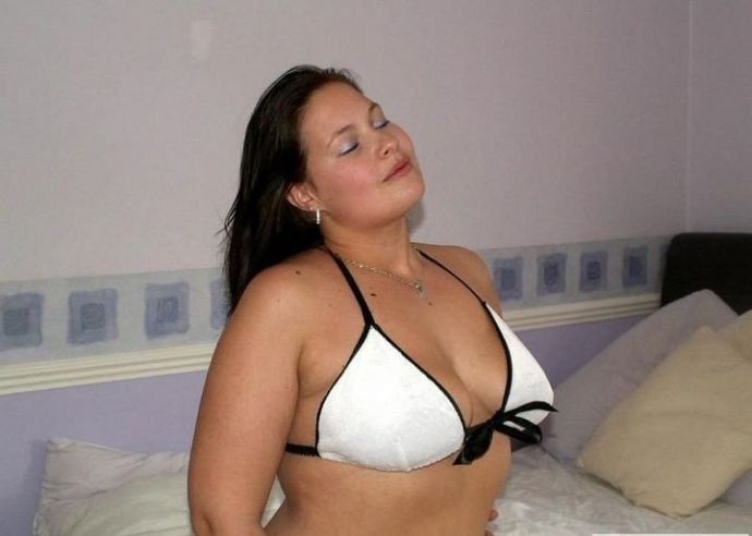 Классная фотосессия толстой брюнетки с огромными дойками.