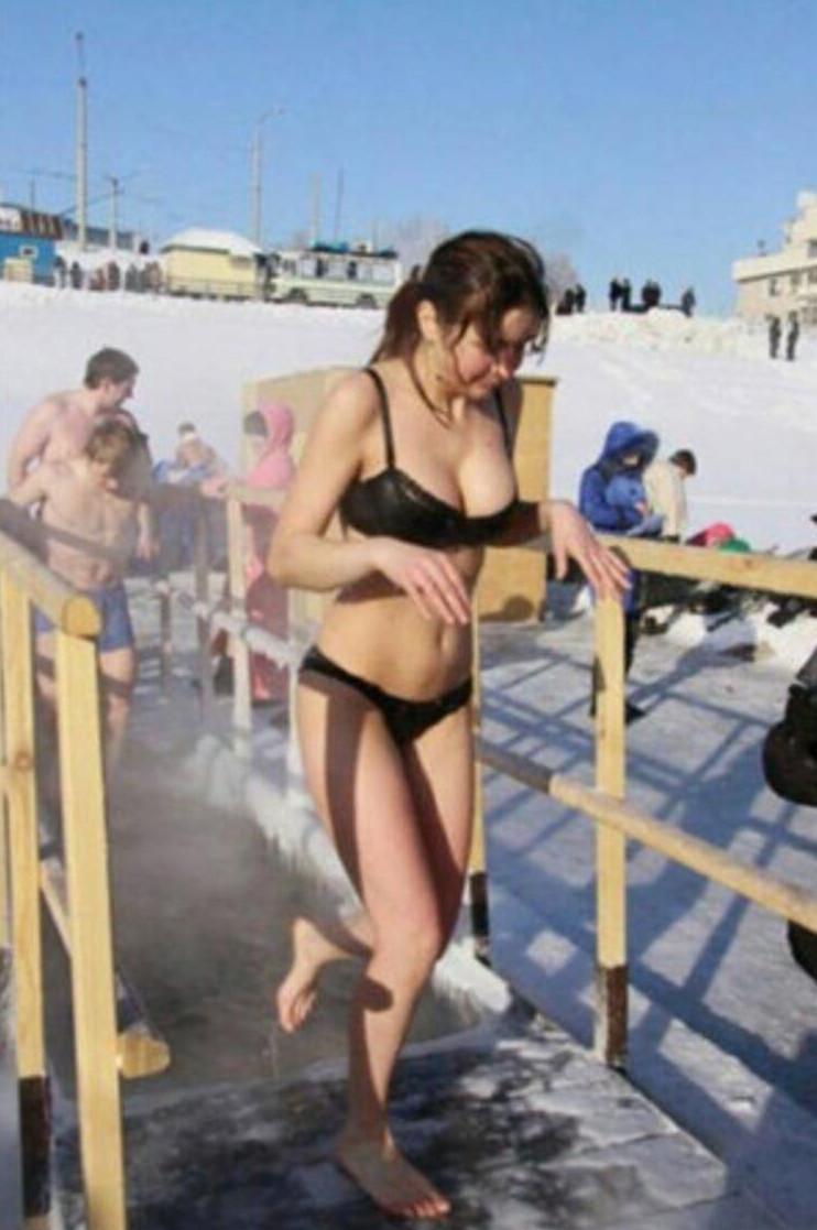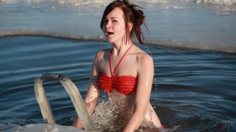 Дівчата на водохресних купаннях гаряче