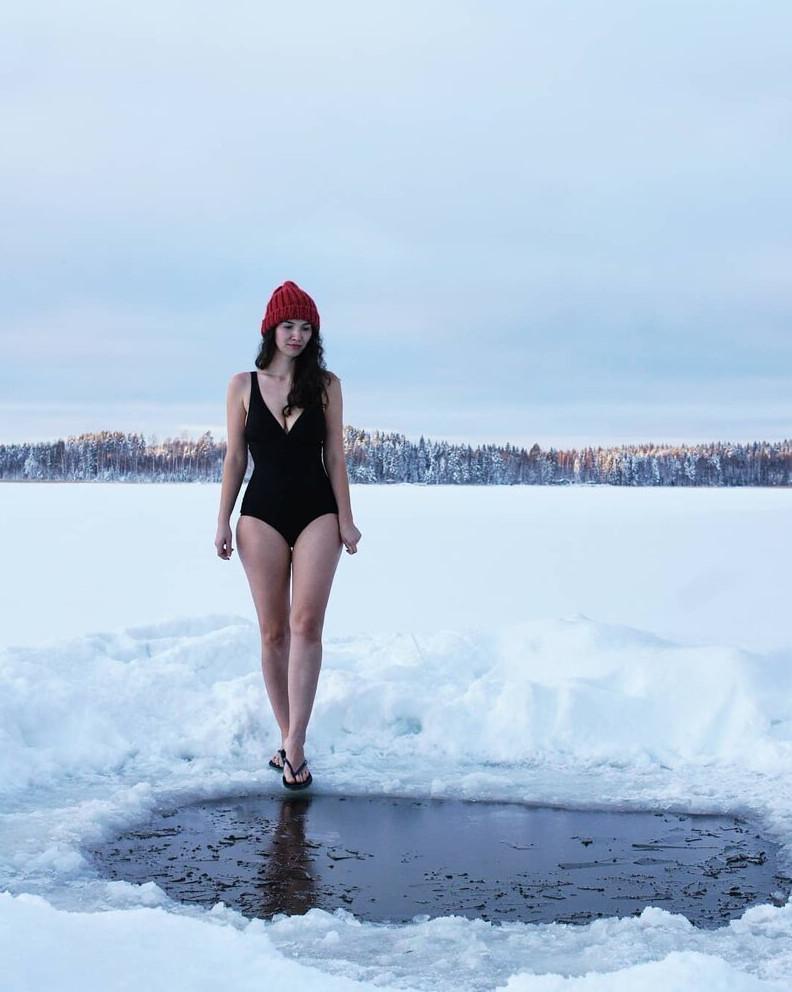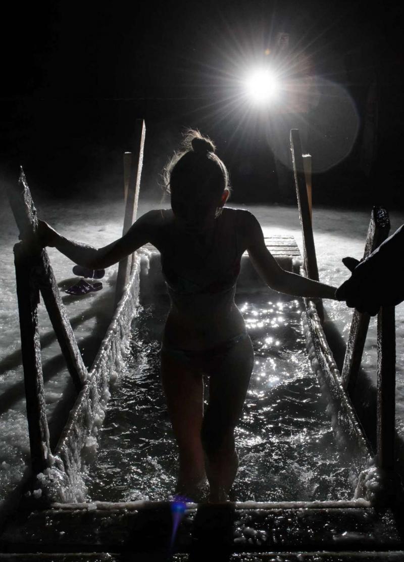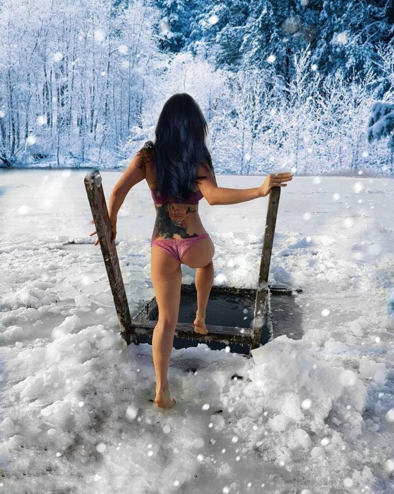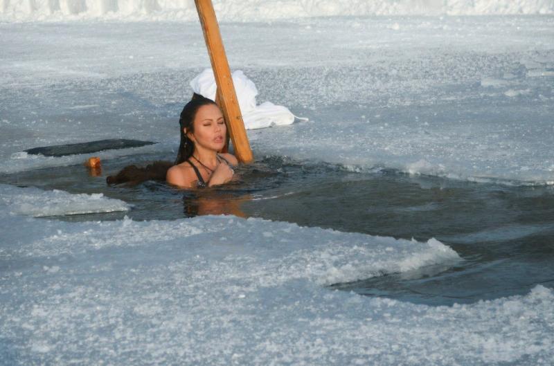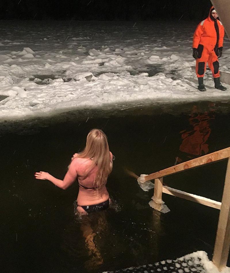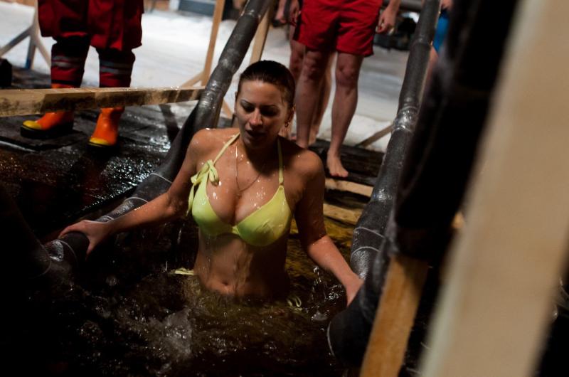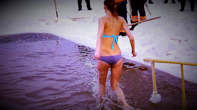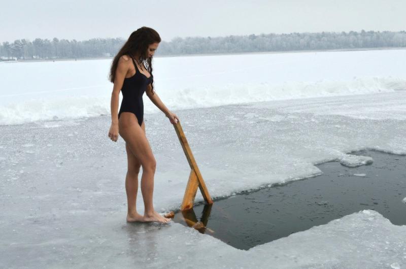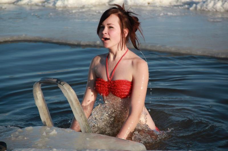 Дівчина занурюється в ополонку