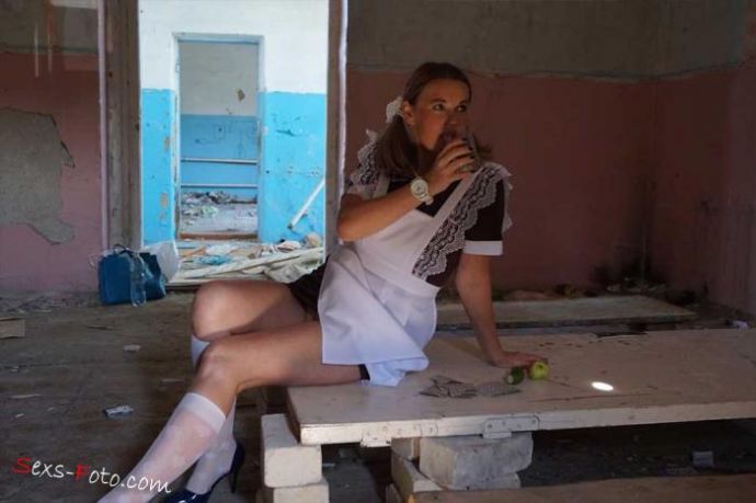 Заколебал обычный секс, сказал муж и ушел на работу. Жена долго думала, что хочет этот идиот и решала порадовать своего кобеля в костюме девчонки девственницы, как будто она пионерка и жаждит наказания, за неправильно выполненную домашнюю работу.